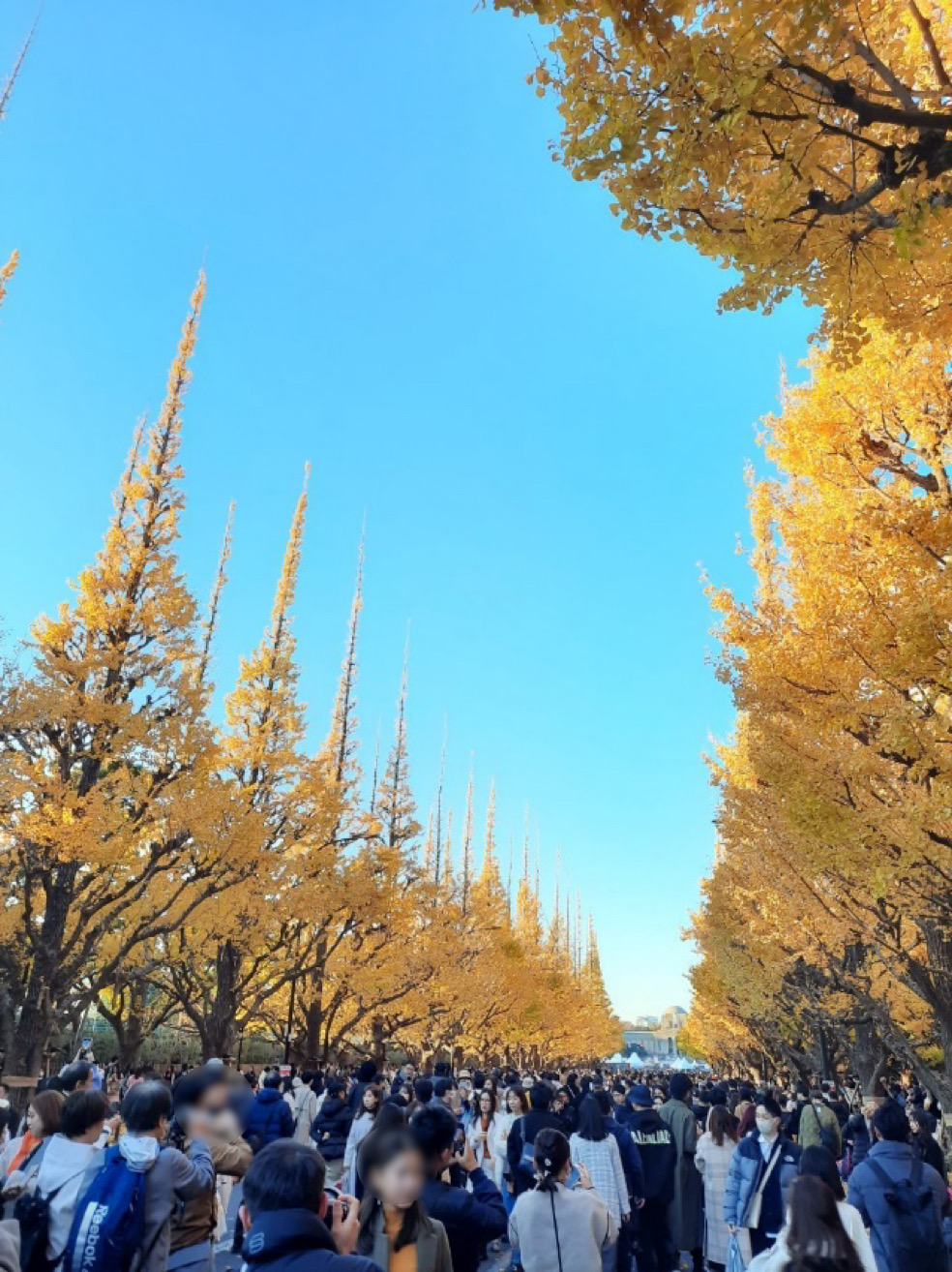 ต้นอิโจ / イチョウหรือต้นแปะก๊วย เรียงกันสวยงาม ในช่วงที่ใบไม้กำลังร่วง