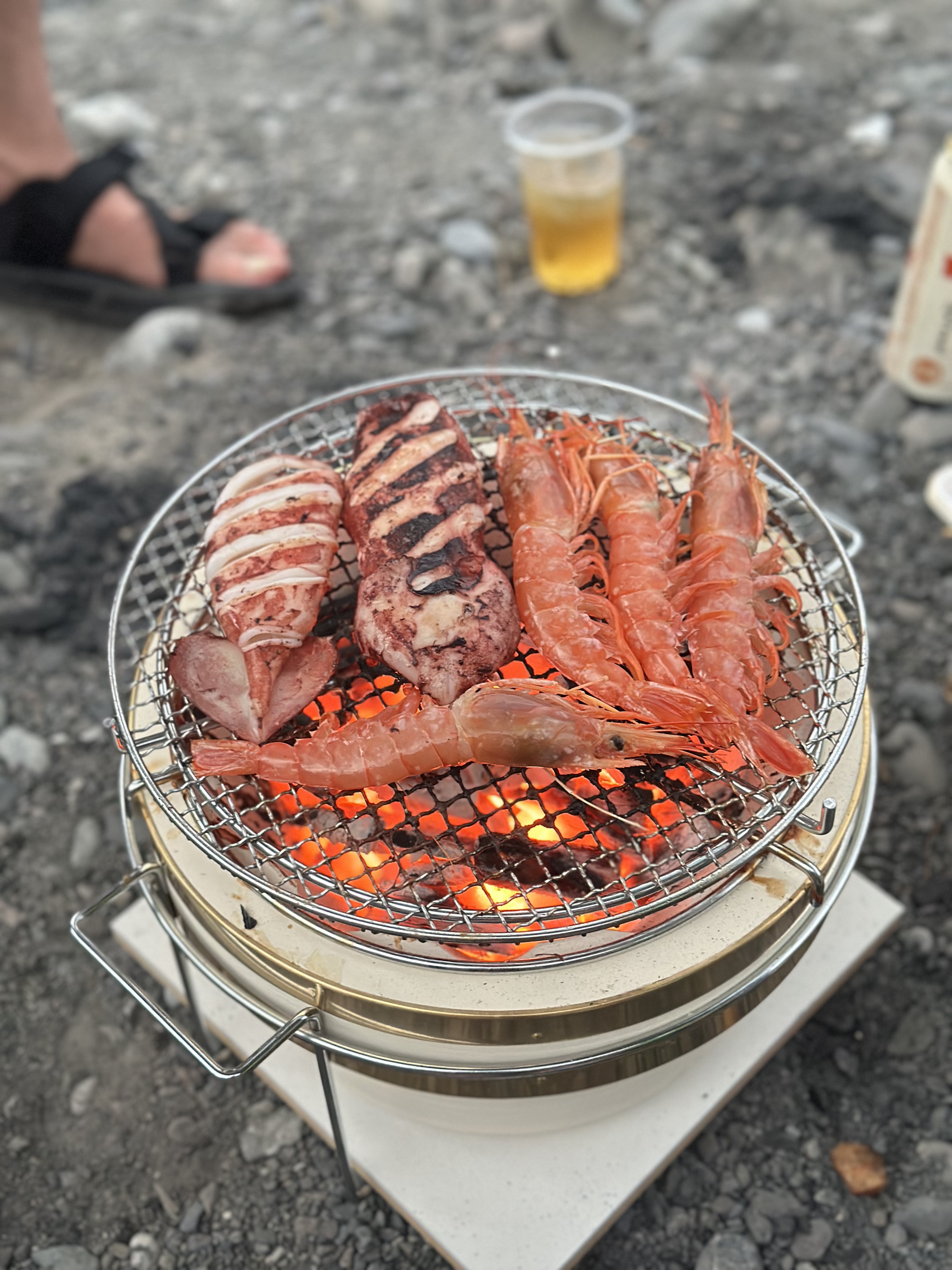 ตั้งแคมป์เสร็จเรียบร้อยก็ลงไปเล่นน้ำคลายร้อน ตกเย็นก็ปิ้งย่างบาร์บีคิว